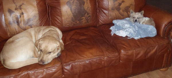 Pee Wee here. I just wanted to tell all you nice people at Pet Pro Life that I am having a great time with my new family. Check out the pictures mom attached. My big brother Jake and I are getting along really well. I am loving playing ball in my back yard, and the couch is really comfy. Jake and I like to hang out there sometimes. (no we aren't spoiled:))