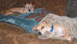 I also live with two cats who don’t much like to play chase. Their looks say “chase me, Ray. I dare you!” So what is a dog supposed to do? Then they turn around and "whack....hiss!" I just don’t get it. I don’t trust them around my food or toys, even though Mom keeps telling me they don’t want them. They must really like me, though, because every day they leave me treats in the box with the sand in it. Mom seems to be beating me to them lately, though, darn it.