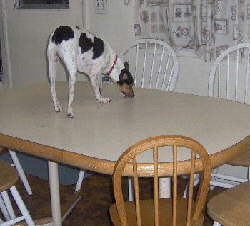 The one above is me scratching my neck on the carpet.My mom says she couldn't believe her eyes when she saw me standing in the middle of the kitchen table (I guess I'm not supposed to do that), but I didn't get in trouble because she was laughing too hard.